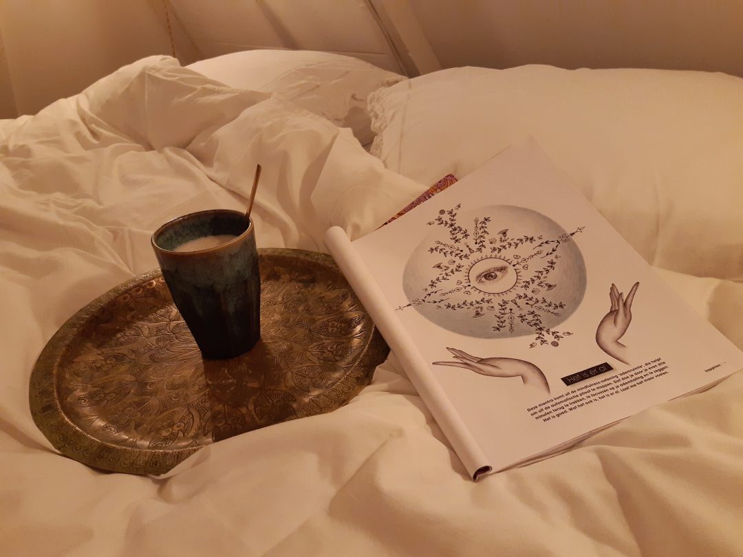 Het is amper halftien in de avond als ik tussen de lakens schuif. Lekker latte op links, mijn favoriete tijdschrift op rechts. De regen tikt onafgebroken tegen mijn slaapkamerraam en ik kan mijn geluk niet op, dat avondje me-time is er deze week eindelijk van gekomen. Ik wil net mijn tijdschrift openslaan, als ik hem door de huiskamer hoor aankomen. Door het sniffende geluid tussen de snelle voetstappen weet ik dat hij huilt. Hij huilt bijna nooit. Nog voor hij goed en wel boven is, begint hij al tegen me te praten, met lange uithalen.
